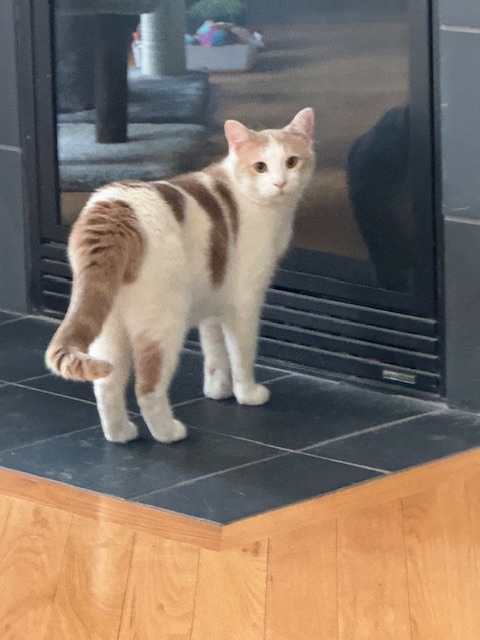 This is Blaze. He likes to stare at the fireplace. Jenna thinks it's because he can recognize his reflection in the glass.
